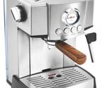 brim 15 Bar Espresso Machine, Cappuccino, Americano, Latte and Espresso Maker, Milk Steamer and Frother, Removable Parts for Easy Cleaning, Stainless Steel/Wood Accents, wood finish handle (50030)