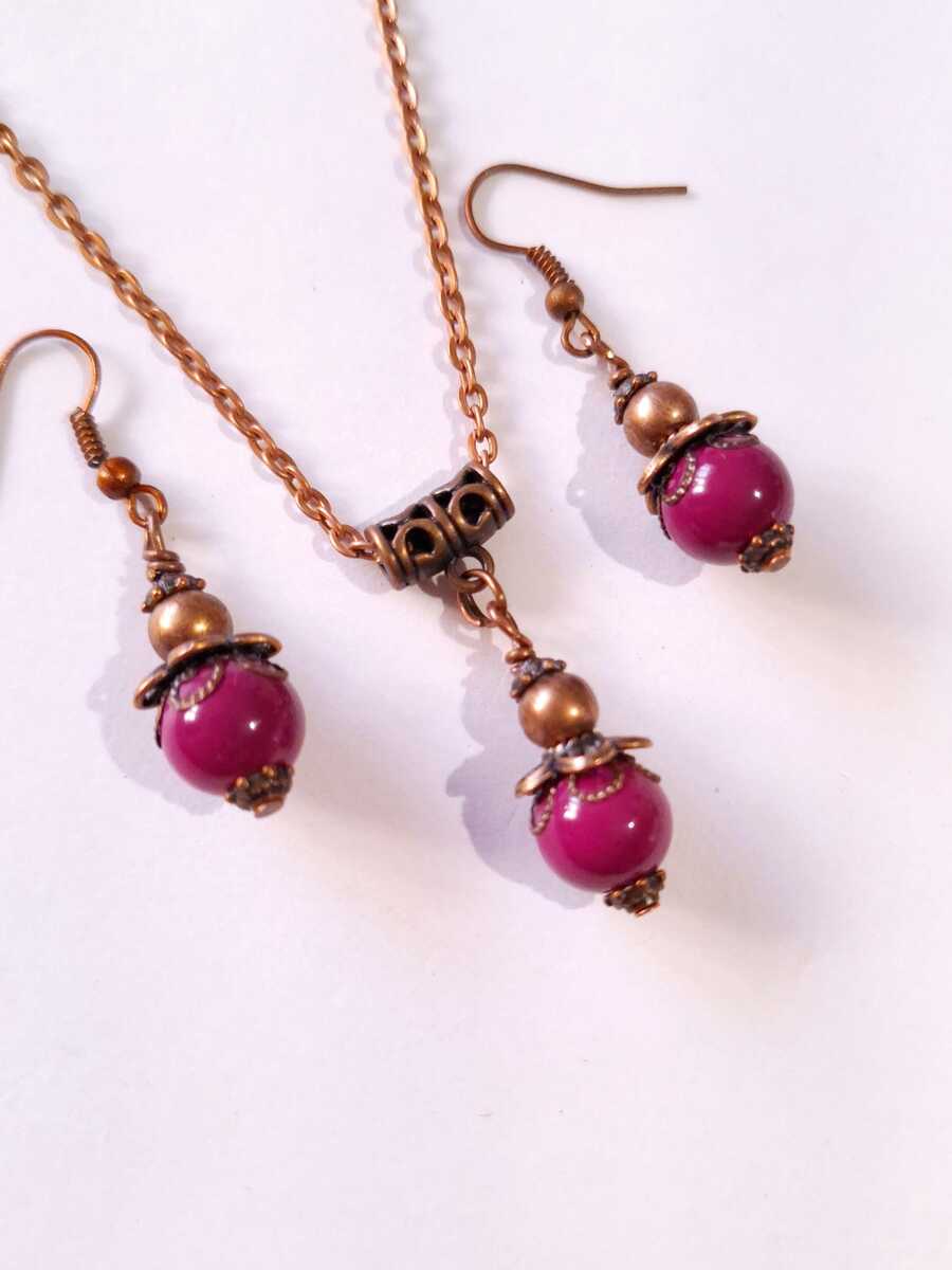 - burgundy porcelain copper necklace jewelry set earrings Boho necklace set tale r