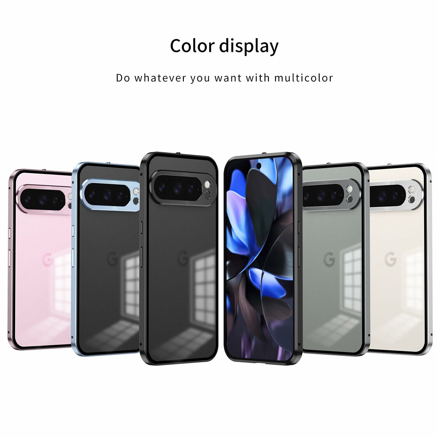 - case For Google Pixel 7 (Color: BLUE) Magnetic Metal Side Bumper Matte CLEAR Bac
