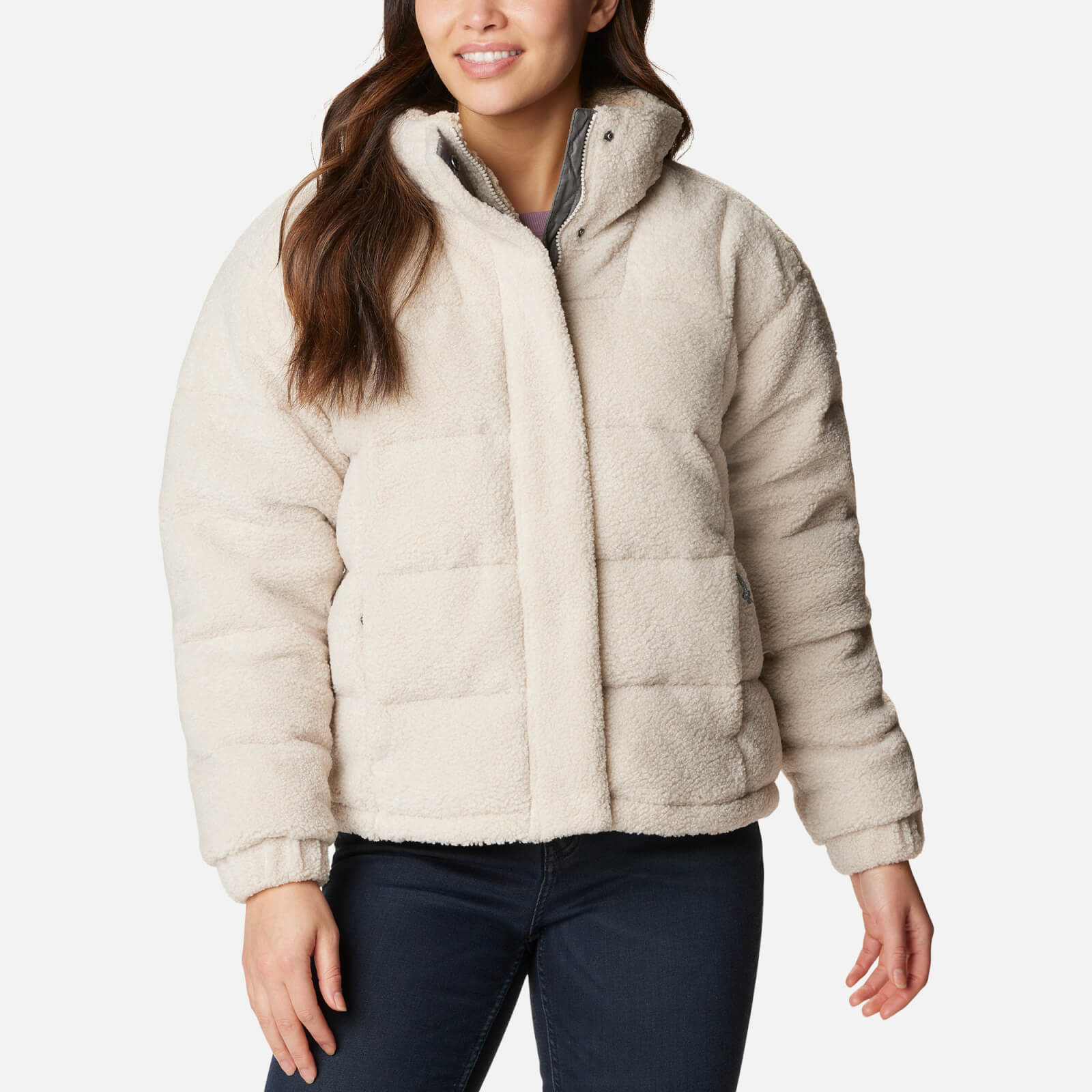 Columbia Women's Ruby Falls Novelty Jacket, Large, Dark Stone Doodle Sherpa / LT BEIGE / L