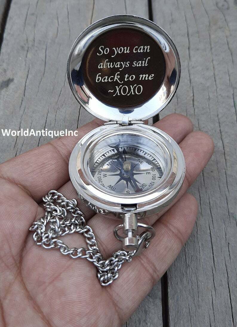 - compass, Christmas Gift, Silver Compass, Personalized Compass, Baptism gift