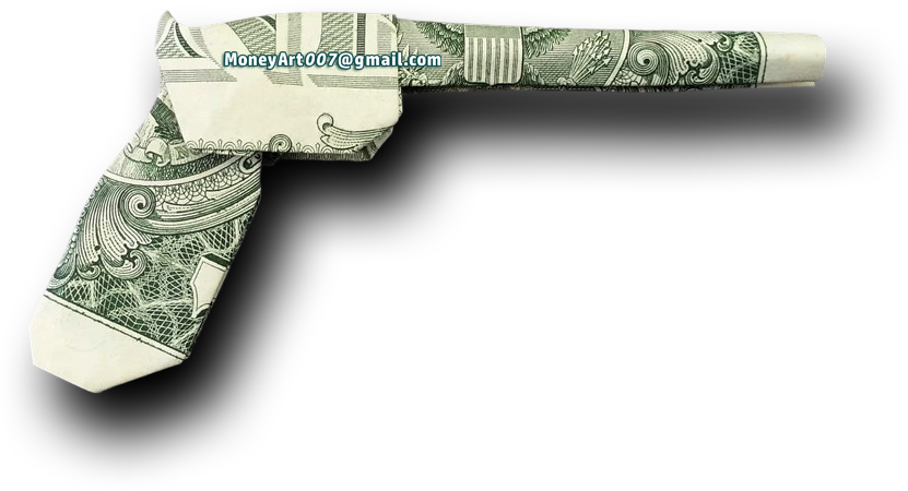 Up for sale is a beautifully crafted Origami Gun. It's folded by hand and it's made with real money!