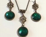 emerald green bronze jewelry set Victorian green set necklace earrings Boho jewelry set faux crystal vintage emerald green set gift for her