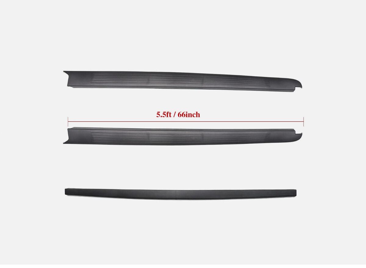 Type:Bed Rail Tailgate Cap Molding Kit Color:Black Placement on Vehicle:Left, Right, Rear Features:Easy Installation Material:Plastic Item Length:66 inch