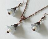 gray flower copper jewelry set Victorian jewelry flower necklace gray flower ear