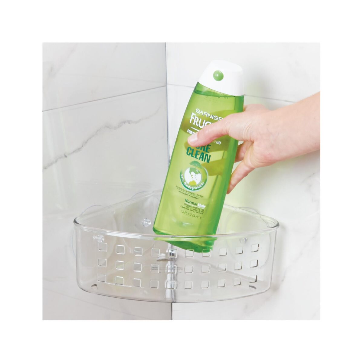 - iDesign Plastic Suction Cup Corner Shower Basket for Bathroom Storage - Clear -