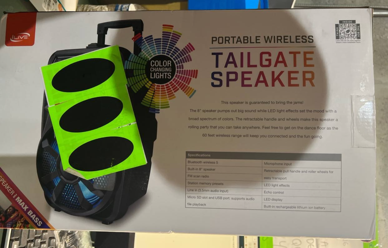 iLive Bluetooth Tailgate Party Speaker Portable Audio LED Light Effect 30W AUX Brand: iLive Model: ISB380B Compatibility: Compatible with Bluetooth-enabled devices, smartphones, tablets, USB flash drives, AUX input devices, and FM radio. Item includes: Please note: This item includes 1x iLive ISB380B Bluetooth Tailgate Speaker, 1x USB cable Only ? As Pictured. No other accessories are included. Quality: Original Condition: Open Box. This item has been previously opened. It is important to note that this item may be missing some accessories that typically come with the new package, please read the Items Included section. However, rest assured that all essential components required for the item's basic functionality are included. The item has been thoroughly tested to ensure optimal performance. Please review the provided images (from second on) for a clear representation of the item's current state. Notes: Please note that the first picture of the item is for illustrative purposes only. For an accurate representation of the product's appearance, please refer to the pictures starting from the second image onwards. These subsequent pictures provide a true depiction of how the product actually looks. The box may be damaged due to bulk storage. Features: ? Bluetooth Wireless Streaming ? FM Radio ? Built-in Rechargeable Battery ? Telescoping Carry Handle Wheels ? USB AUX Input ? Built-in Microphone ? LED Light Effects ? Microphone Echo Control ? Rugged Tailgate Design Specifications: ? Bluetooth Range: ~60 ft ? Inputs: USB, 3.5mm AUX, Microphone ? Battery: Rechargeable (up to 6 hours playback) ? Power: AC Adapter or Battery Powered ? Built-in Carry Handle ? Speaker Size: ~8" Woofer ? Dimensions: Approx. 14" H x 10" W x 7" D ? Weight: ~6?7 lbs ? Country of Manufacture: China Thank you for choosing our Wholesale small business based in Florida. We specialize in Cell Phones and Accessories, although we also offer a variety of closeout lots to cater to diverse customer preferences. With over two decades of experience selling since 2002, we truly understand the significance of your purchase, regardless of the amount spent. Rest assured that we are fully committed to resolving any issues that may arise. Our dedicated team operates from Monday to Friday, 9 am to 5 pm, and we make it a priority to answer all inquiries promptly. We kindly request that you give us the opportunity to address any problems before opening a case or leaving feedback. Your satisfaction is of utmost importance to us, and we will do our best to find a satisfactory solution. Furthermore, we value fairness in pricing, especially for wholesale orders. If you feel that the listed price is not suitable, we encourage you to utilize the Best Offer feature. We are always willing to work with you to reach a mutually beneficial agreement. Once again, we sincerely appreciate your interest in our items. If you have any further questions or require assistance, please don't hesitate to reach out. We are here to serve you.