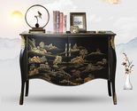 Product description: Transform your entryway with this stunning hand-painted landscape cabinet that marries artistic beauty with practical storage. At 47.2 inches wide and 34.6 inches tall, this solid wood masterpiece showcases exquisite scenic paintings featuring mountains, rivers, and temples, framed by elegant curved edges and refined gold accents. The cabinet's thoughtful design provides generous interior storage space behind its artistically adorned exterior, perfect for organizing household essentials and valuables. Its classic silhouette and detailed craftsmanship make it an ideal statement piece for entry halls, living rooms, or formal spaces. The cabinet's unique profile works beautifully as an entryway divider while adding sophisticated charm to your home's decor. Each piece features meticulous paintwork and premium finishes that highlight the natural beauty of the solid wood construction, creating an heirloom-quality furnishing that seamlessly blends antique artistry with modern functionality.