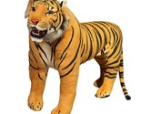 Product description: Bring the wild into your home with this large, rideable realistic tiger plush toy from Interoknack. Measuring an impressive 25.6 inches in height and up to 47.2 inches in body length (excluding tail), this jumbo stuffed animal creates maximum impact in any space. The tiger features authentic-looking stripes, expressive eyes, and a textured plush body that's both soft to touch and robust in construction. Built specifically for imaginative play and safe seated use, its well-engineered stance provides support for light riding, making it an adventurous addition to children's bedrooms, play centers, or photography studios. The durable standing construction and sturdy stitching ensure lasting enjoyment while maintaining its vibrant appearance over time. Whether used as a dramatic photo prop, room centerpiece, or playful companion, this realistic tiger model encourages adventure and creative play for both children and the young at heart.