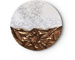 Product description: Transform your space with this stunning 35-inch round wall art masterpiece. Handcrafted from premium white leather with sculptural gold metallic waves, this piece creates extraordinary visual depth and dimension. The artisanal mixed-media design captures light beautifully, creating captivating shadows and movement that change throughout the day. Perfect as a statement piece for luxury living rooms, stylish entryways, or high-end hallway installations. The frameless construction ensures easy mounting while maintaining its bold, contemporary presence. Each panel features hand-shaped textures and reflective highlights that bring striking surface depth and chic elegance to any interior. This versatile 3D wall art seamlessly complements both contemporary and boutique design aesthetics, turning ordinary walls into galleries of modern style.