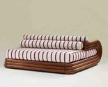 Product description: This modern minimalist double-sided sofa lounge chair by Interoknack represents the pinnacle of contemporary furniture design. Meticulously crafted from solid wood with sleek, rounded edges and modular lines, this versatile piece measures 37.8" x 37" x 26", making it perfect for creative installations in any sophisticated space. The innovative double-sided design allows for flexible placement as a striking room divider or central conversation piece, inviting interaction from both sides. Ultra-soft cushioning wrapped in designer upholstery provides exceptional comfort with bold contemporary striping and supportive multi-layer backrests ideal for lounging or entertaining. This architectural statement piece arrives fully assembled, ready to transform luxury hotels, upscale clubs, modern apartments, or open-plan living areas with its timelessly stylish presence and functional luxury.
