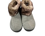 isotoner Slipper Womens 6.5/7 Grey with Brown Faux Fur Soft Comfortable Warm