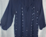 - jcp Womens size Large 3/4 Sleeves Blouse Top Navy Blue Bling Rayon Flowy