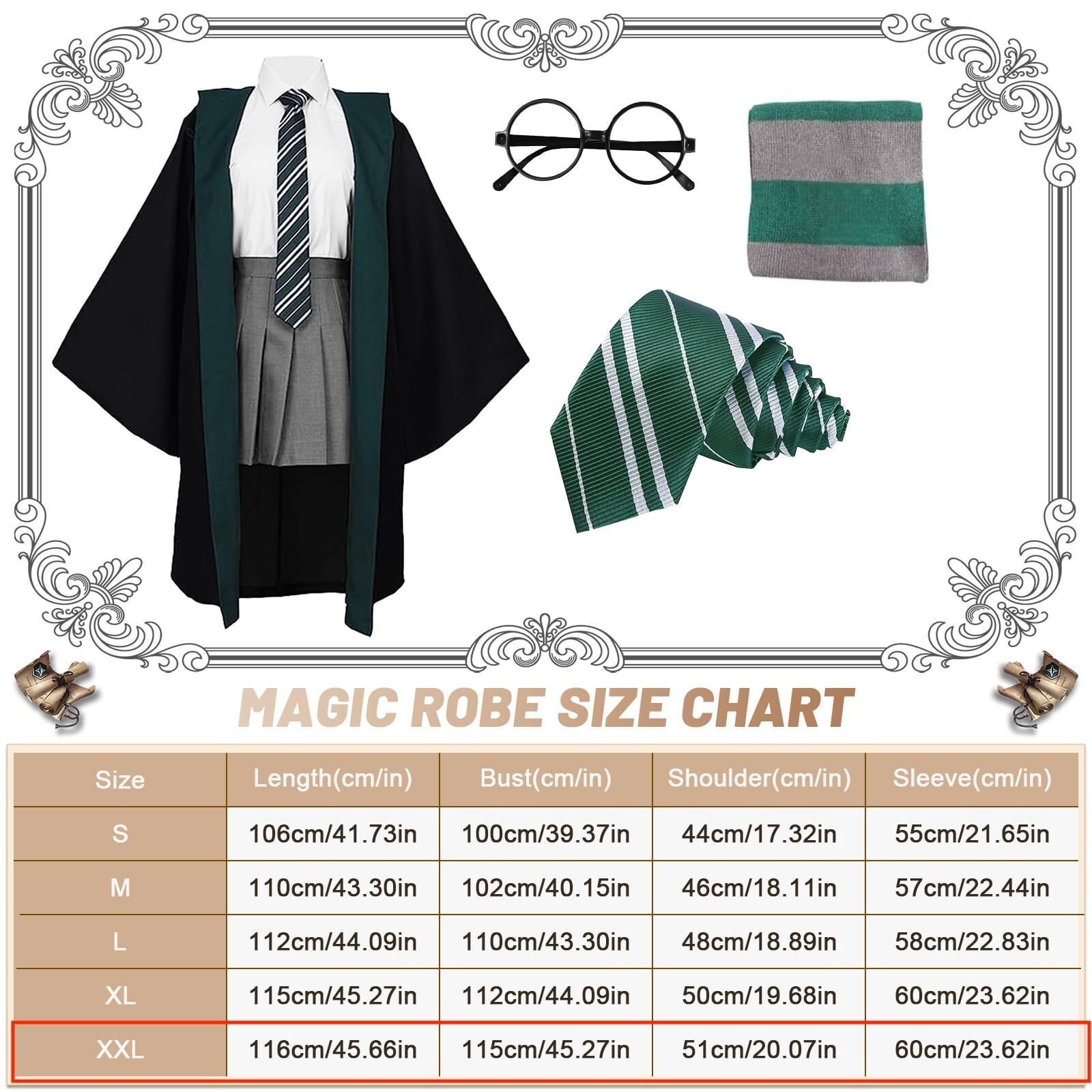 magician themed cosplay costume cloak glasses scarf and tie - green - Adult XXL