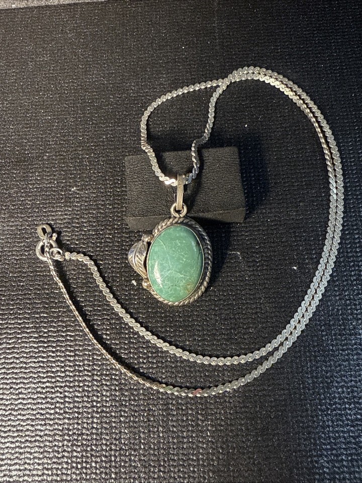 - native american turquoise pendant sterling - With Italian 925 Silver Chain!