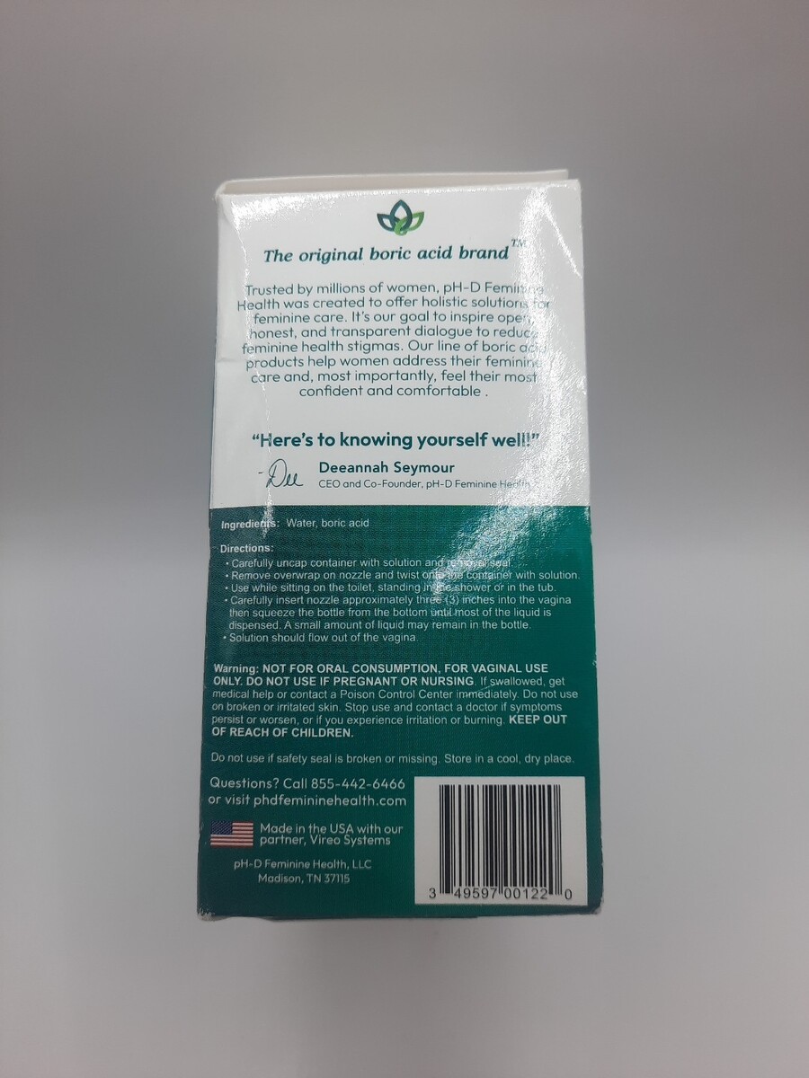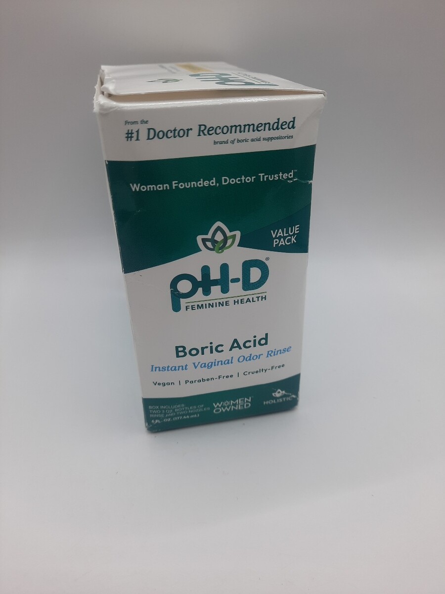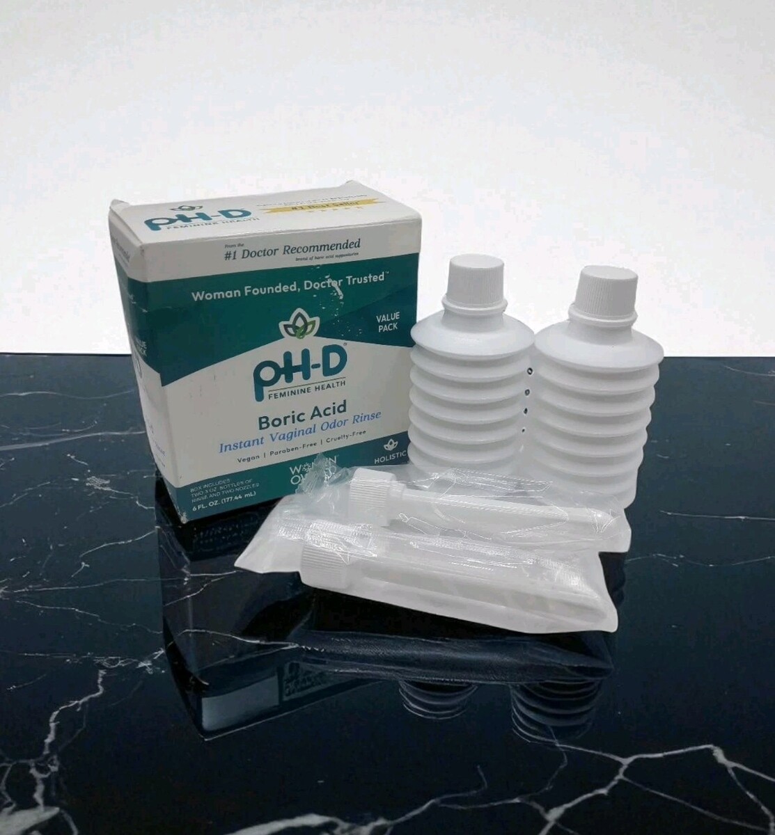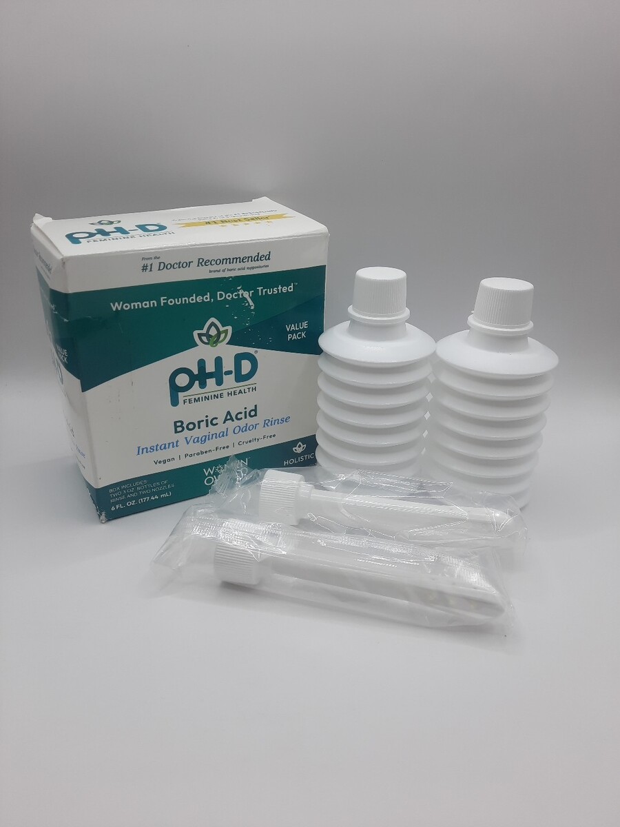 pH-D Boric acid, Instant Vaginal Odor Rinse, 2 bottles 2 Nozzles 6oz Exp 5/26.