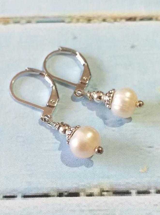 Silver-tone genuine white pearl earrings. Bohemian pearl earrings .
