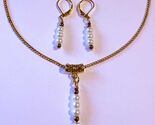 Beautiful Set of gold tone tiny Hematite and white little glass pearl beads pendant necklace and earrings. Antique style gold-tone set necklace and earrings . Gold tone little white glass pearls Victorian style necklace and earrings . Boho necklace . Boho jewelry set . Boho pearl earrings . Bohemian necklace and earrings . Birthday set necklace and earrings . Gold-tone Elegant style jewelry set . Bridal jewelry set. Jewelry set for wedding. Birthday gift set.