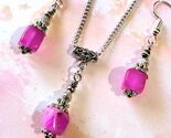 pink Agate Silver jewelry set Victorian pink Agate earrings agate necklace minimalist Boho Agate jewelry pink earrings magenta fuchsia set