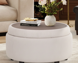 round Storage Ottoman with Storage Reversible Tray, Multi-Functional Footrest, Sturdy Stylish Small Coffee Table , Beige