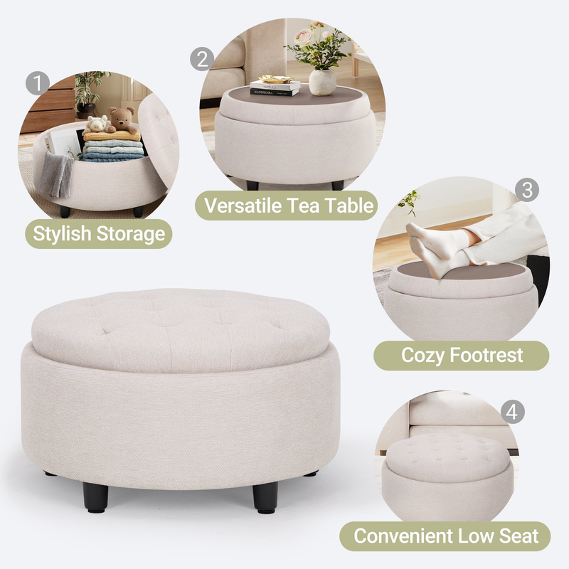 - round Storage Ottoman with Storage & Reversible Tray, Multi-Functional Footrest,