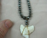 Primary image for s5-22) Modern 1-1/4" TIGER SHARK TOOTH black hematite gemstone bead 19" NECKLACE
