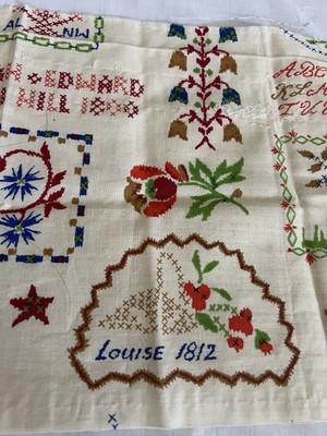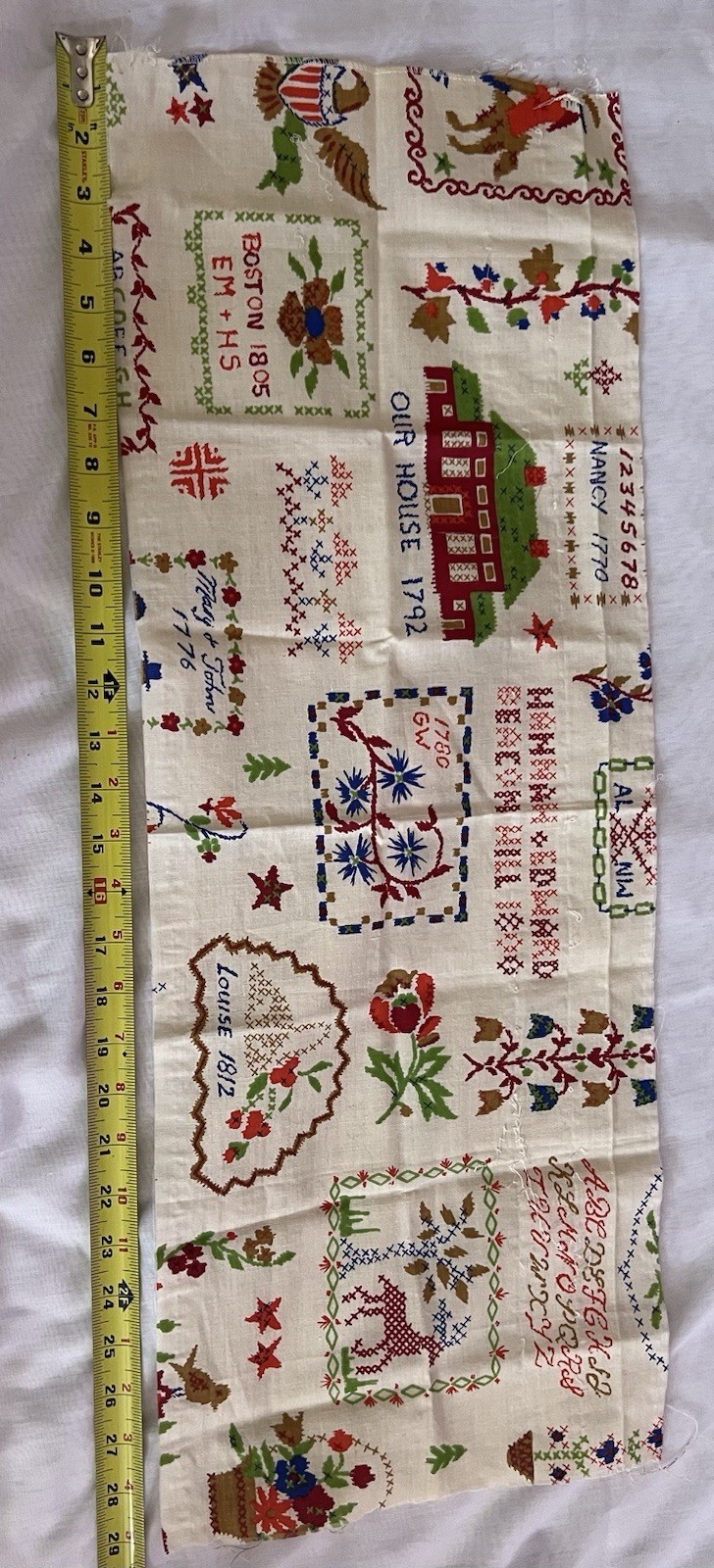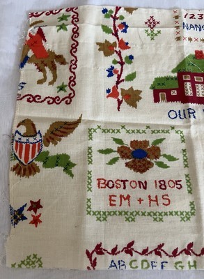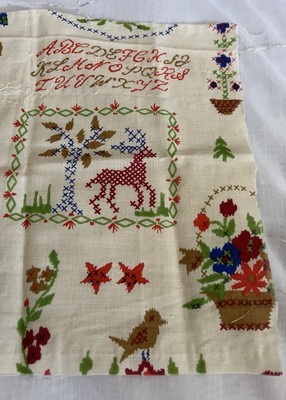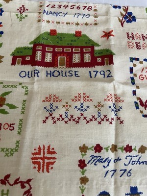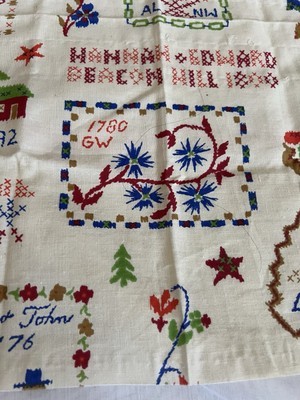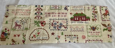This beautiful piece of needlework is a must-have for any collector of vintage textiles. The intricate design and vibrant colors make it a unique addition to any sampler collection. Made with high-quality cotton, this piece is sure to last for years to come.