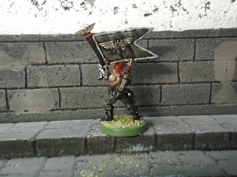 - unreleased catachan jungle fighter standard bearer metal warhammer 40K