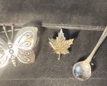 This vintage brooch lot is three authentic and unique brooches, perfect for adding a touch of pizzazz to any outfit. Each brooch in this collection is a one-of-a-kind piece that combines vintage charm with a modern sense of style. Whether you're a collector or simply looking to elevate your wardrobe, these brooches are sure to make a statement and stand out from the crowd. Add a touch of vintage flair to your look with this stylish and eclectic assortment of brooches.