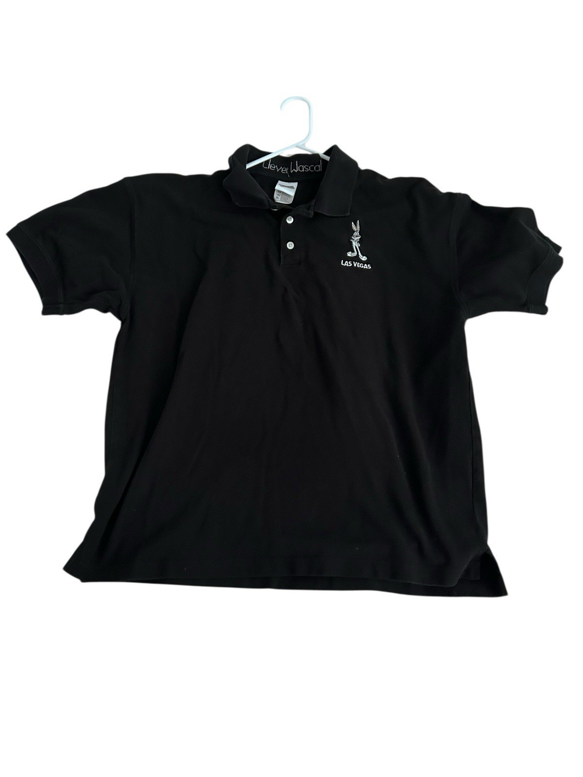 - Warner Bros Bugs Bunny Polo Shirt Mens XL Clever Wascal Cartoon Embroidered Blk