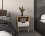 - Wenden 21" Nightstand: One Drawer, Open Shelf, Natural Oak & White