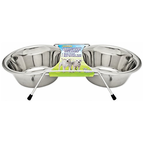 westminster pet products 19432 Qt, Stainless Steel Double Diner Raised Pet Bowls
