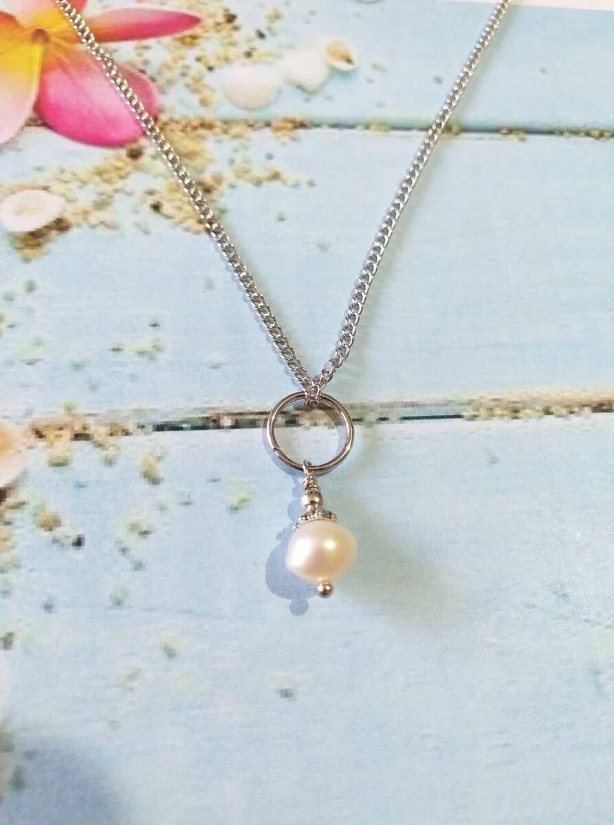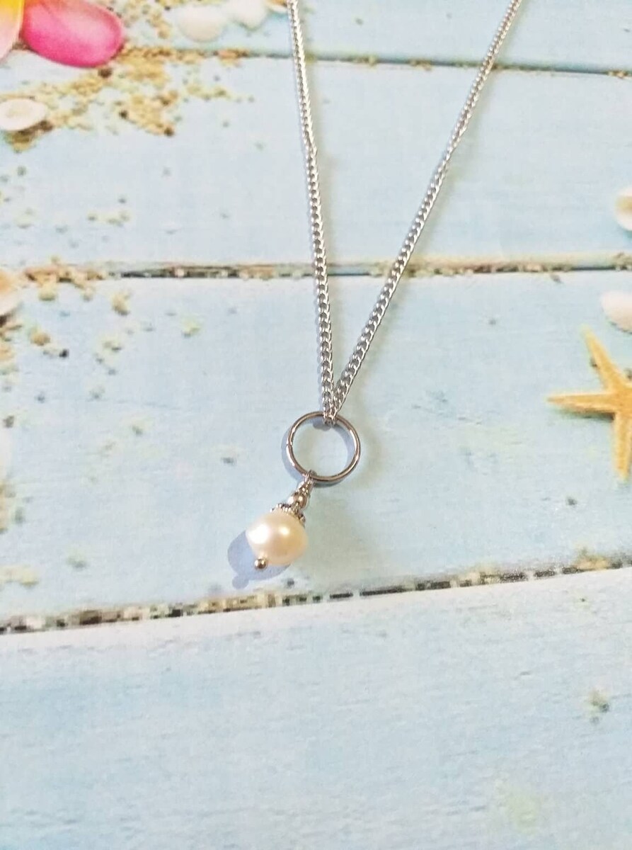 Beautiful silver-tone single white pearl minimalist style necklace .